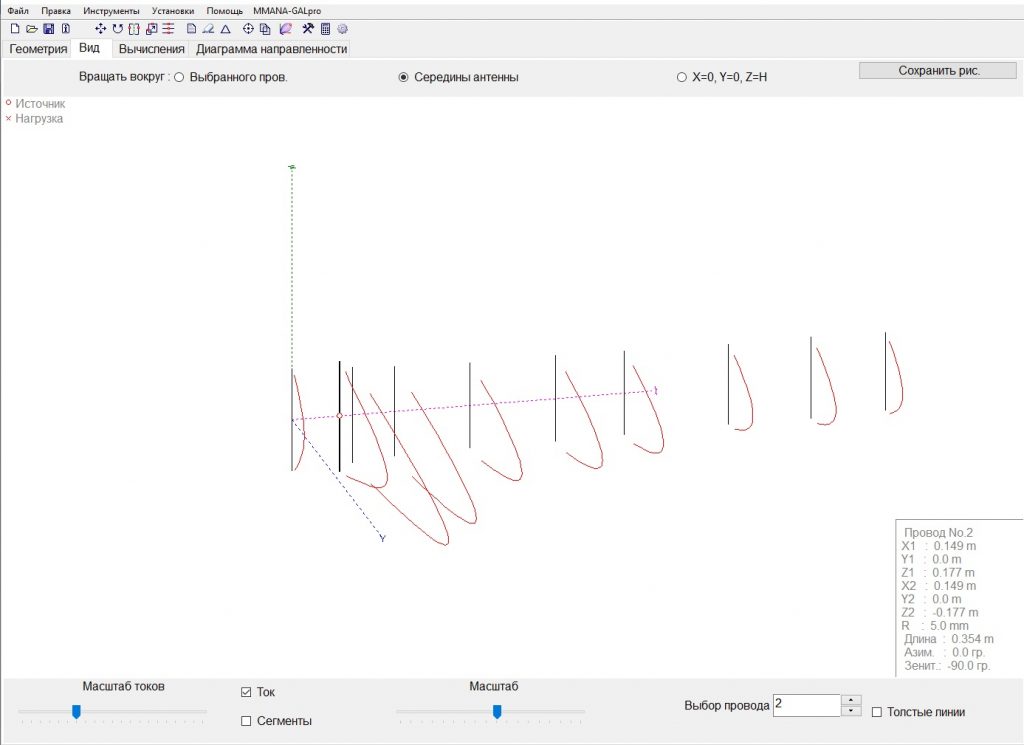 Оптимизировалась антенна в программе с тремя приоритетами: КСВ, Усиление и реактивное сопротивление.